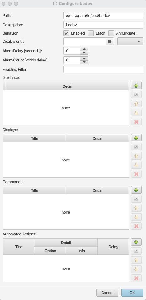 Enabling Filter: An optional expression that can enable the alarm based on other PVs.