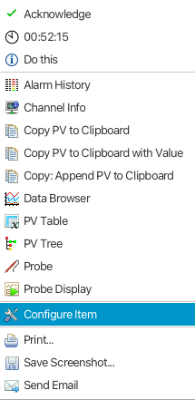 In the Alarm Tree and the Alarm Table views user may right click on an alarm item to launch the configuration editor dialog: